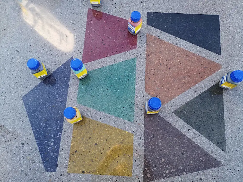Con questo sistema, i pavimenti in cemento possono competere con il marmo o il terrazzo per bellezza e resistenza. Inoltre, è possibile creare disegni e loghi su misura, permettendo alla fantasia di realizzare opere di inestimabile fattura.
